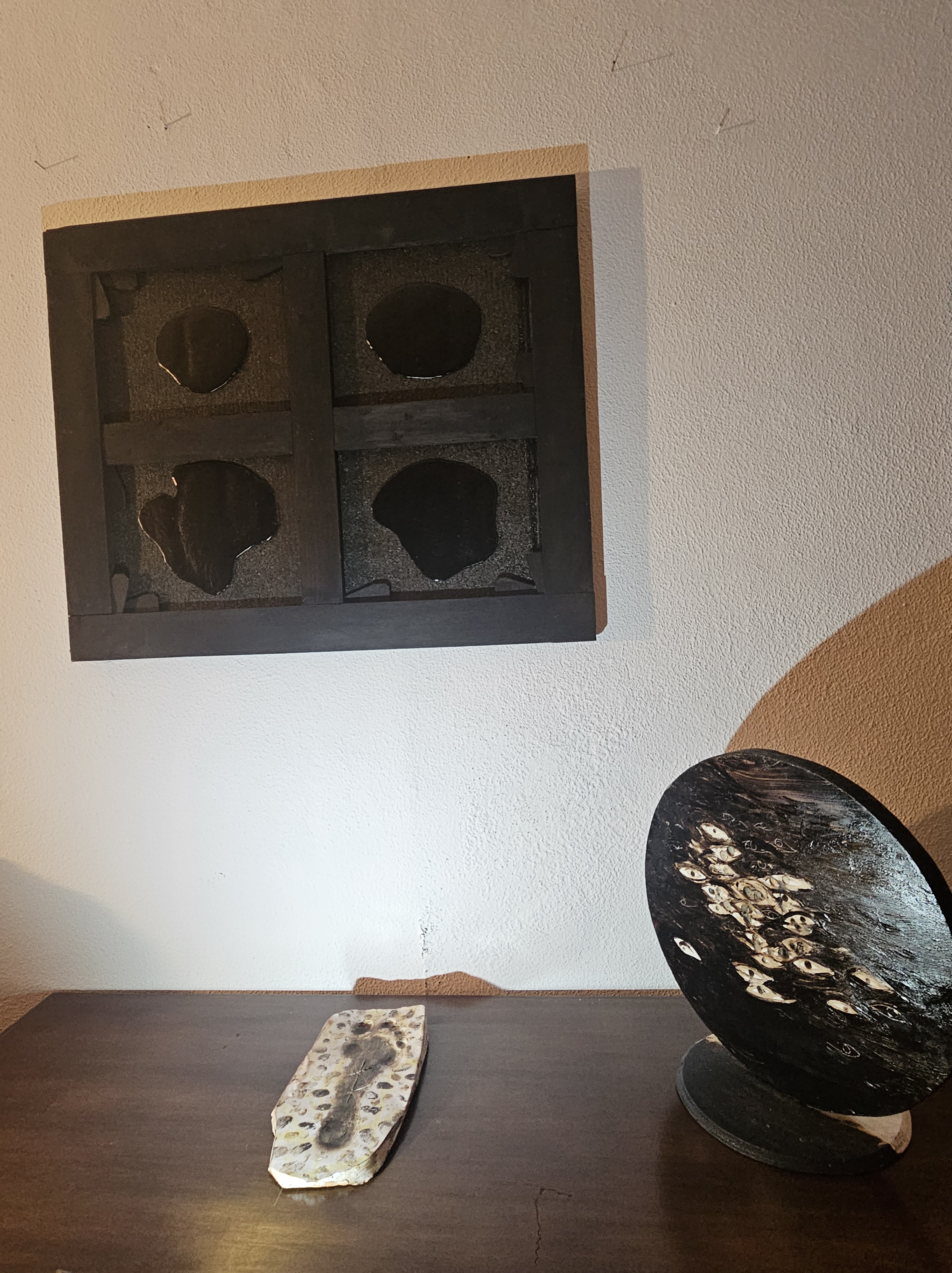 Un’altra scultura, tipica del linguaggio di Ceccobelli, ci ha riportato subito alla sua poetica: un intreccio di segni, materiali e spiritualità, capace di evocare mistero e trascendenza.
